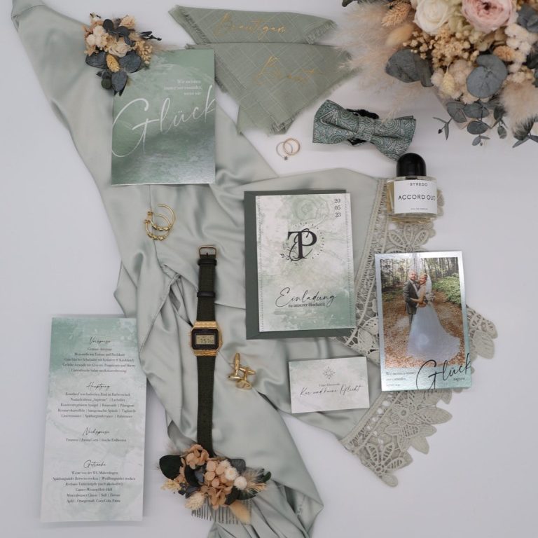 Ob nur Einladungskarten oder ein komplettes Set – ihr entscheidet, welche Papeterie-Elemente ihr benötigt. Alles wird in einem einheitlichen Stil für euch umgesetzt.